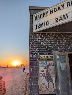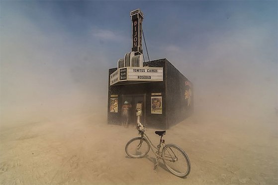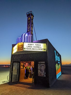 I’m the lead designer and builder for an art project conceived by David Neuman: an old western movie theater (akin to the one in The Last Picture Show) called the Black Rock Bijou. Against all norms, we positioned the installation at the furthest, most desolate area of the Burning Man Festival, choosing not to be placed on any map or event schedule. Many leave the festival without even knowing there was a fully functional movie theater showing black-and-white classics carefully chosen to align with the theme that year. The weary wanderer often approaches the building as if it were a mirage, in complete disbelief. The Bijou has become a Burning Man staple over the years, making appearances in Smithsonian Magazine, CNN, SF Gate, and more.